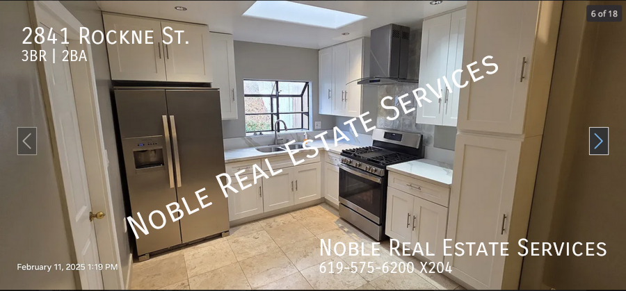 3395.00 **** Dogs OK Cats OK Pets Ok (Breed Restrictions Apply) No Yes Deposit: $3395 **On Approved Credit** Great one-story home with three bedrooms and two full bathrooms. It features a spacious family room, a bonus room near the dining area, fresh new paint and carpet, and a remodeled kitchen and bathrooms. Enjoy a large backyard with fruit trees and a solar system to help reduce your electric bills. TENANT RESPONSIBLE FOR ALL UTILITIES, TRASH IS FREE WITH CITY OF SAN DIEGO (**If no showtimes are available, don’t worry! Go ahead and submit your info and our automated system will let you know when showtimes become available). Also, please be sure to click on the 'Apply Now' button to see all of our requirements and how we work! (SS) (YC) 02/19/2025 No Noble Real Estate Services www NobleProperties info 1371 Presioca St. Spring Valley CA 91977 3395.00 Yolanda or Emily **** 619-575-6200 Option 1 Bathroom Cabinets Closets Garage Kitchen Washer And Dryer Connections
