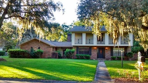 Spacious four bedroom, three bathroom home in peaceful Spanish Oaks. Half acre property is located on a quiet river street with mature shade trees. Kitchen features beautiful cherry cabinetry, quartz countertops, stainless steel appliances, and breakfast bar. Formal dining room with tray ceiling and recessed lighting. Formal living room off foyer could also be used as office or study. Family room with cozy brick fireplace leads out to large backyard. Oversized master bedroom includes balcony access with views overlooking the neighborhood. Conveniently located off I-295 and San Jose.