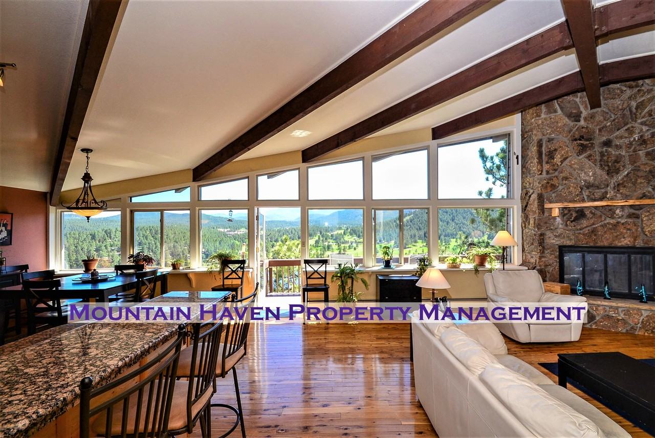 SPECTACULAR EVERGREEN LAKE VIEWS FROM ALMOST EVERY ROOM - WALK TO THE LAKE AND DOWNTOWN. Mountain contemporary home with 4 bedrooms, 4 baths, a gorgeous master suite with fireplace, private deck with breathtaking views and large master bath with dual vanities and soaker tub. Great room has vaulted ceiling, fireplace, wall of windows, and open floor plan with granite kitchen. Backs to Denver Parks, easy care, natural landscaping. Watch ice skating on the lake, storms roll in, birds fly at eye level, deer/elk, all from your private deck. Great mountain views in all directions, level driveway, best commute to Denver and skiing. A DECK ON EACH LEVEL! Truly one of a kind home in a prime location! No smoking and no cats please. One dog considered. Minimum 12 month lease. Visit www MountainHavenCO com to fill out an application to set up a showing.