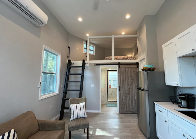 Property Id: 1227019 Enjoy this centrally-located lofted bungalow in the heart of St. Pete. Less than :10 min to downtown & :15 min to the gorgeous Gulf Coast beaches. Five minutes to Woodlawn Sports Complex, walking distance to Booker Creek Park. This newly renovated loft features 14' ceilings, large walk-in shower, private parking, and a nice private outdoors eating area. The pull out couch sleeps two (2) & the upstairs bed sleeps two (2). Brand new appliances, double burner, toaster, pots/pans, utensils…all of the creature comforts you'll need.