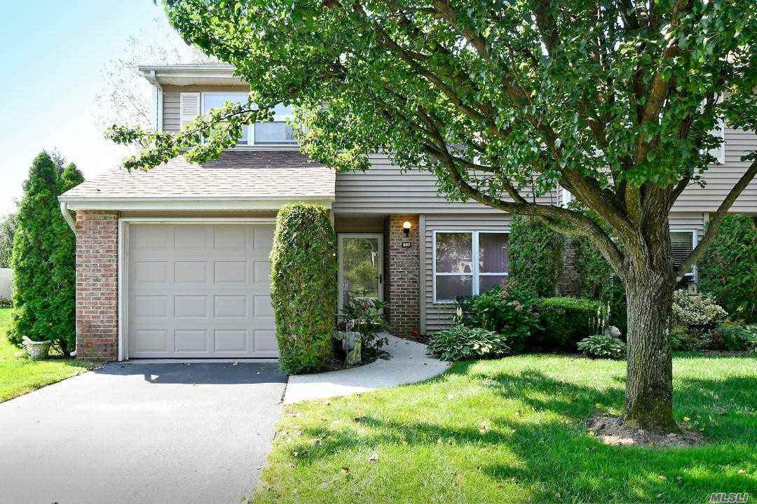 This home is located in a gated community. It features a Bright Open Concept w/3 bedrooms, 2 1/2 baths, Eat-in-Kit. New Appliances, Oversized LR/DR, Wood flooring, End Unit on the Pond. Beautiful Sunsets. (Lg Parking area across from the condo with beautiful evergreens surrounding it.) Smithtown School District. Near all the parkways.