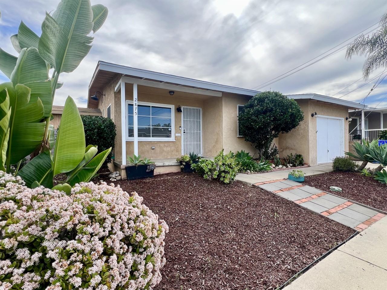 This idyllic 1950s 2 bedroom / 1 bathroom home is tucked away on a quiet and desirable street in City Heights and beholds the most spectacular views! This home has been recently refreshed with a neutral and contemporary color palette. There are authentic hardwood floors throughout this bright and open floor plan with large classic midcentury-style windows in every room. The spacious living area opens into a fully equipped and updated kitchen with stainless steel appliances. Two generously-sized bedrooms with large closets are situated at the back of the house where one can easily step out to the backyard and enjoy breathtaking views of the Chollas Parkway and beyond from the newly-constructed deck. There is an attached garage for a small car or storage with a full-size washer dryer. Additional features include inviting front porch, window coverings, ceiling fans, a mature orange tree, and outdoor garden storage. City Heights is a centrally located and highly walkable neighborhood and home to many local restaurants, bars, and cafes. Just minutes to Downtown, North Park, Golden Hill and Mission Valley, it provides easy access to I-805 connecting to I-15, I-8 and SR-94 in just a matter of minutes. Available now! Lease until April 30, 2025. Tenant responsible for all utilities. Owner pays landscaping. No pets preferred.