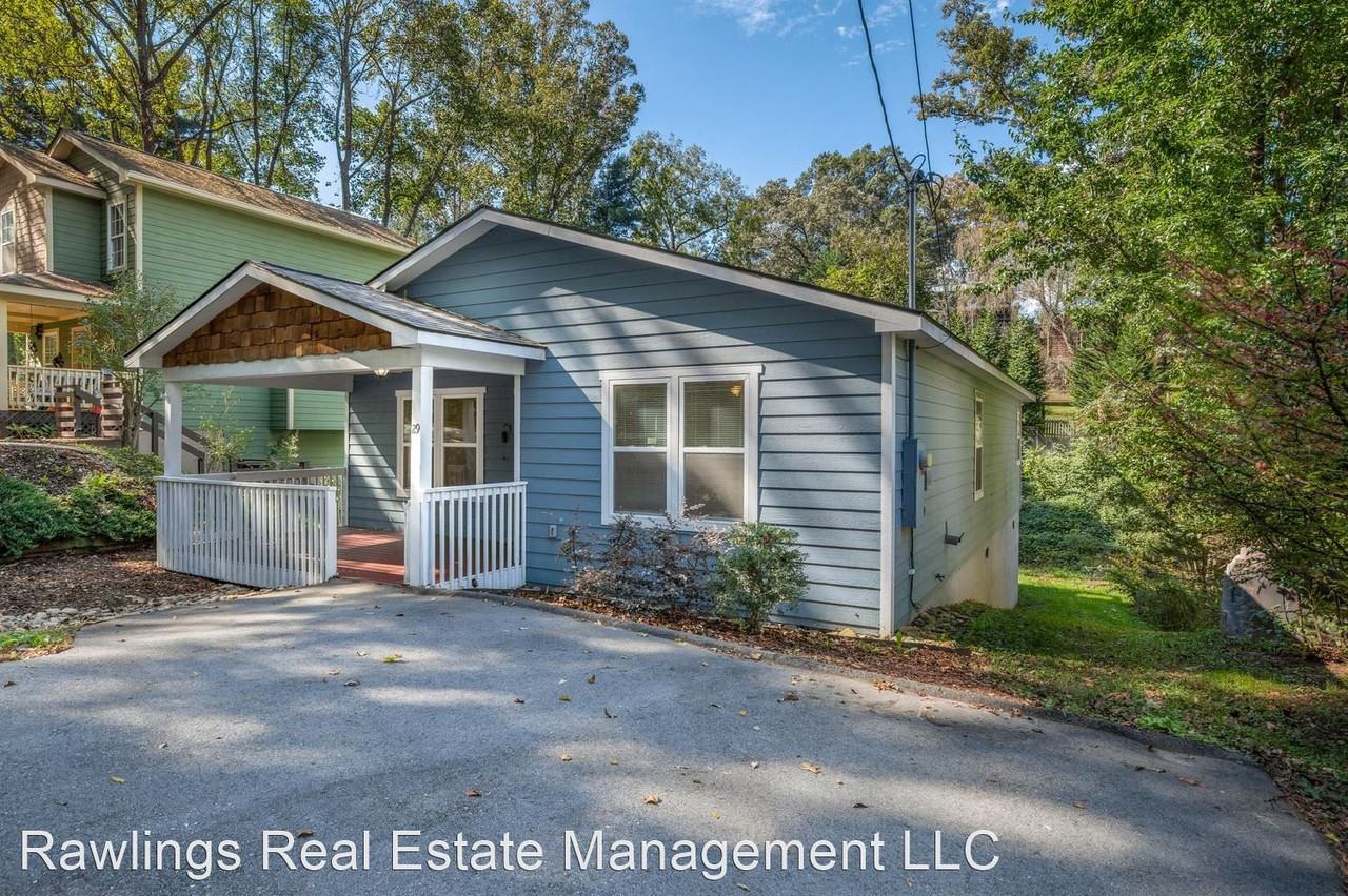 Sweet Bungalow in South Asheville - A charming covered front porch opens into the open plan living room, dining area, and kitchen. The kitchen has nice cabinets, granite counters, and a peninsular bar for additional dining space. Appliances include the electric range, built-in microwave/hood, dishwasher, and French door fridge. The laundry closet with shelving and storage is located in the kitchen, and the full-size washer and dryer will remain for tenant use, but will not be repaired or replaced by the owner. The primary bedroom is located at the back of the home and includes a private back deck, walk-in closet, and en suite bathroom. The remaining two bedrooms share the hall bathroom. Both bathrooms have nice vanities, tile floors, and a shower/bathtub. Bedrooms are carpeted. Tenants are responsible for lawn care and all utilities, including a monthly sewer reimbursement, currently $33.39. An estimated 2.5% yearly increase to the sewer fee occurs in July. Water is supplied by a shared well. Central heat and air conditioning (electric) plus ceiling fans throughout. Laminate wood, tile, and carpet flooring. Some crawlspace storage for bikes or outdoor equipment. Off-street parking. No pets. No smoking. No cosigners. No Pets Allowed