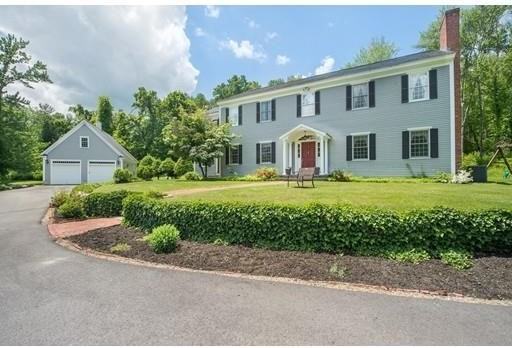 Nestled down a private drive and abutting conservation land, yet within a short distance to the town center! This stately Colonial offers a magnificent opportunity to indulge in 5+ acres of peaceful land surrounded by professional and mature landscaping, sitting walls, stone patioandfire pit. Step in through the elegant two story foyer and enter the impressively updated kitchen, featuring refinished and repainted cabinets, counters, new hardwareandnew refrigerator. Completely redone powder room w/ new flooring, vanityandlighting. Ample options for entertaining in the formal dining and living rooms or for relaxing in the family room or breakfast room.Upstairs provides three spacious bedrooms and a master suite w/ fireplace, large walk-in closetandbeautifully updated full bath with dual vanities,walk-in showerandtub. Take advantage of this unique opportunity to be in close proximity to town, but surrounded by your own private and serene oasis.