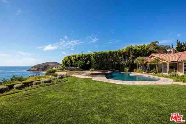 Newly remodeled 4 bedroom/3.5 bath home with beach key on approx. 110 feet of bluff top frontage. Located on one of the most sought-after streets in Malibu, this gated and private estate, with over an acre of manicured grounds, magnificent trees and gardens, offers extraordinary Catalina, city lights and coastline views. A superb blend of understated elegance and impeccable craftsmanship that infuses the best of indoor/outdoor living, this modern home includes a custom glass door formal entry; spacious combination living room with fireplace, dining room and large skylight gourmet island kitchen with walls of glass that open to a resort-style pool/spa and multiple dining/seating areas; a luxurious ocean view owner's suite with gorgeous spa-like bath; an ocean view family/media room with skylight, custom built-ins and floor-to-ceiling custom glass window; two-additional bedrooms with private patios, a bedroom suite with small kitchen, plus a bonus room; two-car garage with guest parking.