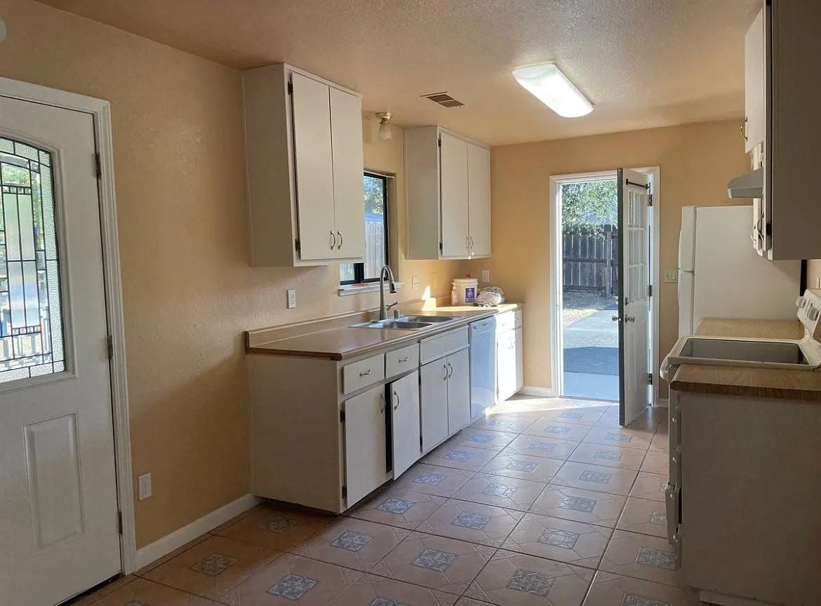This 1,200-foot, three-bedroom, two-bathroom home is for rent on half an acre. 1,850 NEWLY REMODELED: new paint and floors. This home features a large backyard with lots of fruit trees, a shed, plenty of parking, a play structure, and a wide back deck. seeking a long-term rental. First month's rent and a $3,700 security deposit are required.