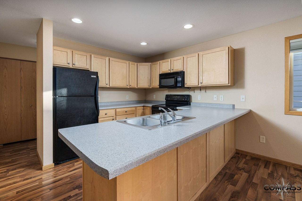 This modern, two-bedroom townhome consists of a full kitchen with a dishwasher and microwave, in-unit laundry, hardwood laminate flooring, attached garage, updated features, and has it's own private entrance. To make it even more convenient, water/sewer, trash/recycling, and lawn care/snow removal are all included in the rent price! Applicants are required to complete a rental application and authorize a credit and background check. Online portal available with AppFolio Property Management software for online payments, maintenance request, and property communications. One month’s rent security deposit required. VISIT www compassmgt cc vacancies for more of our available apartments and APPLY today! In-person and virtual showings are available. APARTMENT APPLIANCES: • Full Size Electric Range • Refrigerator • Microwave • Dishwasher • Washer • Dryer • Central Heating and Cooling GENERAL APARTMENT AMENITIES: • Carpeted Bedrooms and Closets • Walk-In Closets • Open Concept Floor Plan • Storage • Large Windows • Tub/Shower • Private Garage COMMUNITY AMENITIES: • Bike Storage • Located on Local Bus Route • Close to Downtown & Campus • Outdoor Decks • Smoke Free • Pet Friendly - Cats and Dogs