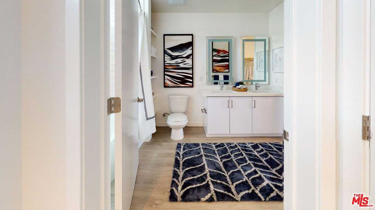 Discover bold, coastal-inspired living with stunning residence featuring white quartz countertop, flat-front cabinetry, stainless steel appliances, gas range, and artful tile backsplash. Enjoy large windows with abundant natural light, modern lighting, wood-style flooring, oversized tub and in-home smart technology with full-size washer and dryer. Designed for effortless sophistication. Community amenities include a multi-level heated pool deck, aqua lounge, rooftop courtyards, outdoor kitchen with TVs, and pickleball court. Stay active in the indoor/outdoor fitness center with yoga terrace or unwind in stylish open-air lounge. Residents benefit from Tesla and EV charging stations, VIP package locker, bike storage, a community shuttle, on-site shops, and LEED Platinum design. Perfect trendy dining and shopping, this community captures true Westside luxury living. Photos may include similar model units and virtually staged renderings. Finishes and views may vary.