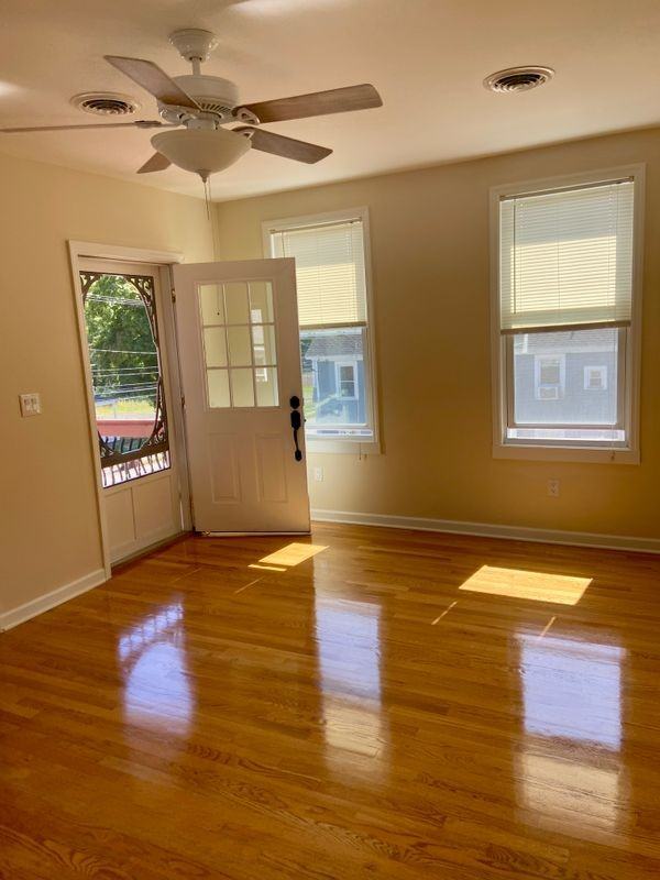 Second floor spacious 2 bedroom plus den & office flat. Lots of natural sunlight highlighting the beautifully redone hardwood floors throughout the 2 living rooms and dining room The large kitchen features ample cabinet space, breakfast bar and room for a table. Off street parking adds convenience and covered rear and side porches for relaxing.
