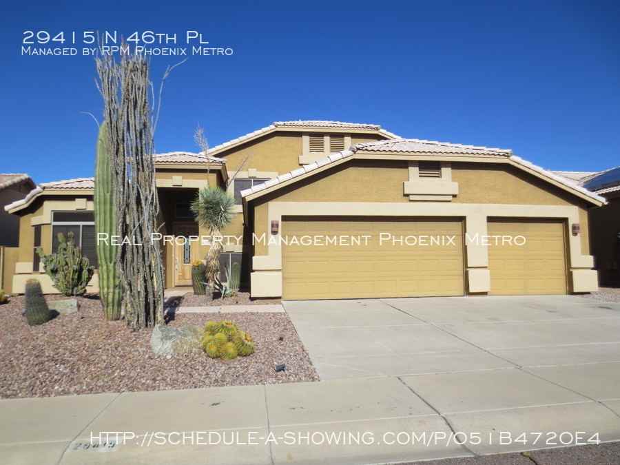 Tatum Ranch luxury property is absolutely loaded with upgrades!! Great curb appeal with desert landscaping & 3 car garage. Modern tile flooring, & open kitchen with stainless steel appliances, gas range, granite counters & white cabinets. Huge living room & 5 spacious bedrooms including the master suite with a walk-in closet & private bath featuring dual vanities, tile shower & separate tub. Resort like backyard with pavers, grassy area, private pool, water feature & pergola covered built in BBQ area. Ready for you to call home! Schedule a showing online today at www rpmphoenixmetro com com Call or text for details 602-672-1787 $50 application fee for each adult. Deposit is equal to one months rent plus a one time $199 administrative fee. Tenant pays all utilities. 5% rental tax/admin fee on top of base monthly rent.