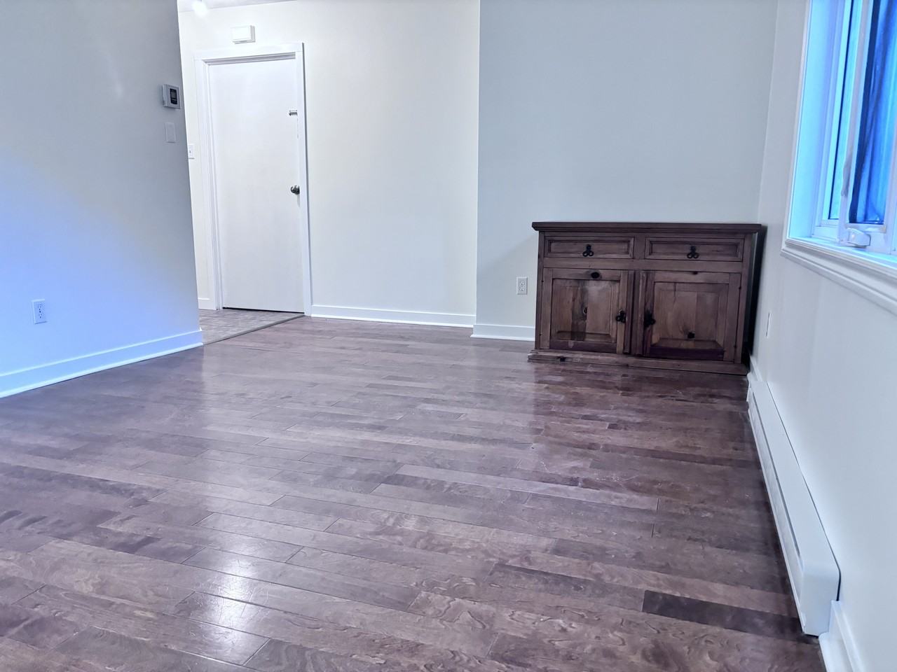 Newly renovated, spacious, and bright 3 1/2 apartment with hookups for a washer and dryer. This unit offers a private entrance for enhanced privacy. Utilities: Heating and electricity are the tenant’s responsibility. No smoking and no animals allowed. Requirements: Credit checks and references will be required. For more information or to schedule a viewing, please contact **** Ideal for those looking for a peaceful and comfortable living environment!