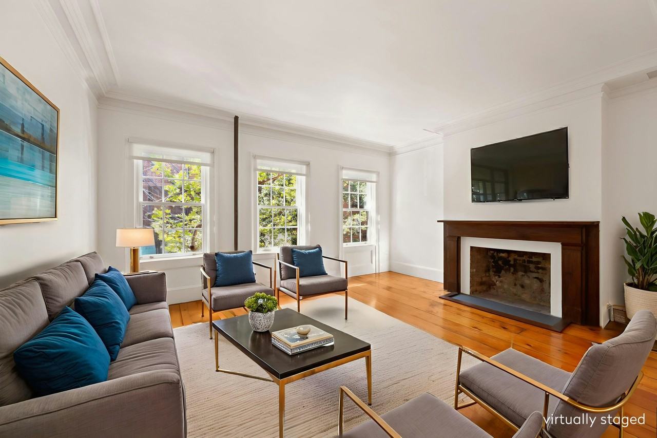 Experience the best of West Village living in this beautifully renovated private townhouse duplex. Located on a quiet, tree-lined street in a Greek Revival townhouse, this sun-filled apartment combines classic charm with modern comfort. The elegant and comfortable home is filled with unique and refined features, including a newly renovated custom kitchen with high-end appliances, hardwood floors, central air conditioning, a washer/dryer, new windows, two skylights, and four decorative fireplaces. This amply sized 2 bedroom, 1 1/2 bath home also includes a formal dining room and a flexible space perfect for an office. The West Village is largely residential, offering peaceful days followed by vibrant nights. The location is close proximity to sophisticated shops, the finest restaurants, world-class galleries, the Whitney Museum of Art, Hudson River Park, and the High Line. Available September 1st. Sorry, no pets and no smoking.