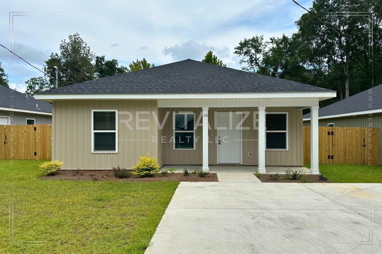 Welcome to your dream home in Saraland, AL! This brand new construction boasts four spacious bedrooms and two full bathrooms, perfect for comfortable living. The open floor plan is accentuated by luxury vinyl plank flooring, offering a modern and elegant touch. The kitchen is a chef's delight, equipped with a stove, a stainless steel dishwasher, a stainless steel microwave, and a stainless steel double-door refrigerator. The granite countertops add a touch of sophistication and durability. The covered front porch provides a welcoming entrance or a relaxing outdoor space. A storage shed will be installed in the backyard. The property also includes a privacy fence, ensuring your peace and security. 3 more new construction homes just like this one are available for rent! Choose the unit you like best! Inquire for more information. **Directions to the property from I-65** - Turn onto AL-158/Industrial Parkway towards Saraland - Turn left onto US-43 N/Saraland Blvd - Turn right onto Everett Ave E (in between Maria's Nails and Fuji Buffet) - Located 500ft on the right **Affordable Housing You may apply online at: https www revitalizerealty com vacancies For more information or to schedule a viewing, please call 251-283-5638. Rent: $1750 Security Deposit: $1750 Application Fee $60 (per applicant) Administration Fee $100 (due upon lease signing) Pets: $300 pet fee, per pet with owner approval **Approval is at the discretion of the landlord** Tenant is responsible for lawn maintenance, garbage service, power, and water. - Power: Alabama Power - Water: Saraland Water - Garbage: Waste Pro All Revitalize Realty residents are enrolled in the Resident Benefits Package (RBP) for $35/month which includes liability insurance, credit building to help boost the resident’s credit score with timely rent payments, HVAC air filter delivery (for applicable properties), move-in concierge service making utility connection and home service setup a breeze during your move-in, our best-in-class resident rewards program, and much more! More details upon application. Managed by Revitalize Realty, LLC