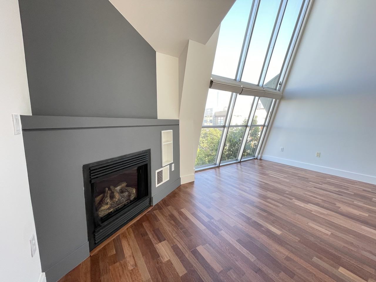 Completely Updated, 2 bedrooms, 2.5 bathroom TOP STORY, CORNER tri level LOFT Approximately 1150 Square Feet Windows on three sides of the apartment This unit has Eastern and western and Southern exposure - very light and bright Luxury kitchen with stainless steel appliances, ceaserstone counters, microwave, dishwasher, gas oven, bar overhang Beautiful hardwood floors throughout The "principal bedroom" is fully enclosed, has two small closets and a full, private bathroom The loft bedroom has mirrored closet doors (not shown in photo) and a full bathroom. This is a LOFT bedroom is not completely enclosed. The living room boasts large, floor to ceiling windows which bring the beauty of San Francisco right into your living room Gas fireplace in the living room Ceiling fan in the living room Overhead lighting throughout. Truly tasteful finishes throughout Washer/Dryer in the unit--conveniently located just off the "principal bedroom" Meticulously maintained, 14 unit building with an elevator Parking available If required, the owner will install an EV charger in your parking space free of charge (220v 40 amp) Storage locker available for $150/month One cat OK. Sorry, no dogs Move in fee $250 Non smoking building- Non smoking unit Location This is a highly desirable central location near the Octavia Boulevard freeway onramp. This location provides easy access to freeways, BART & MUNI. The building is located in the heart of hip Hayes Valley where you will find some of the cities finest casual and fine dining, boutique retail shopping, bars and cafes! The lobby of the building is home to the Artisanal chocolate chop, Christopher Elbow Chocolates. Immediately outside the front door of the building is Blue Bottle Coffee!! Not far from the Castro, the Mission, Civic Center and easy access to downtown via Market Street. FANTASTIC LOCATION FOR COMMUTERS