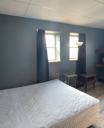 Hotel-style room featuring a queen-size bed (bedding not provided), private heat and A/C, refrigerator, and microwave. WiFi available on site (speed not guaranteed). All utilities included. A non-refundable $75 cleaning fee is required in addition to monthly rent and security deposit.