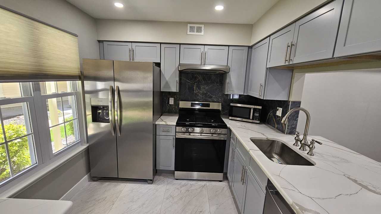 Welcome to 301A Ralston Drive, Mount Laurel, NJ—an inviting and beautifully updated 2-bedroom, 1-bath home designed for comfort and modern living. Step inside to a freshly painted interior with recessed lighting throughout, creating a bright and welcoming space. The bedrooms feature cozy carpeting, while the living and dining areas offer durable vinyl flooring. The kitchen, bathroom, and laundry areas are finished with sleek tile flooring. The kitchen stands out with elegant quartz countertops, stainless steel appliances, and a convenient breakfast bar—perfect for casual dining or entertaining—along with a spacious side-by-side refrigerator with an ice maker. The primary bedroom includes a generous walk-in closet, and the bathroom boasts a tile-enclosed shower with a built-in niche. Enjoy the convenience of a full-size washer and dryer, newer windows, and updated furnace and water heater. With plenty of storage inside and out, plus privacy blinds on every window, this home is move-in ready and waiting for you.