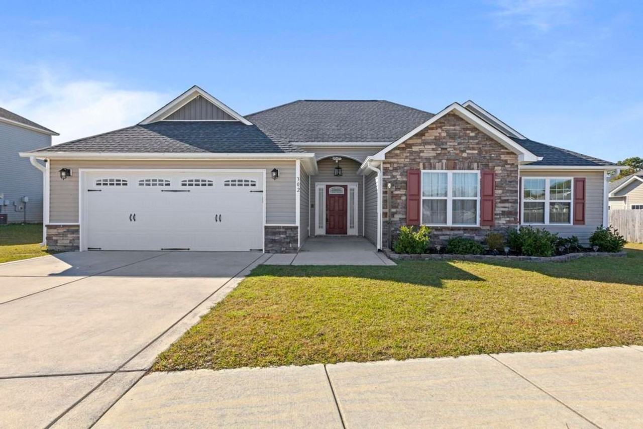 Welcome to this charming 3-bedroom, 2-bathroom house located in the desirable neighborhood of Sterling Farms. This home offers a spacious and open floorplan, perfect for entertaining friends and family. The fenced yard provides a secure space for your furry friends, 2 pets with with owner approval, $150 nonrefundable pet fee per pet. Lawn service included during season. Situated just minutes away from the Piney Green Gate, this property offers convenience for those working on the base. Inside, you'll find beautiful LVP flooring throughout, adding a touch of elegance to the space. Cozy up on those chilly evenings in front of the electric fireplace, creating a warm and inviting atmosphere. The breakfast bar is ideal for quick meals or enjoying your morning coffee. The master bedroom features a walk-in closet, providing ample storage space for your belongings. Unwind after a long day in the garden tub or enjoy a refreshing shower in the tiled shower. The washer and dryer are included AS IS with the property, providing added convenience. Neighborhood offers a community pool. Don't miss out on the opportunity to make this house your home.