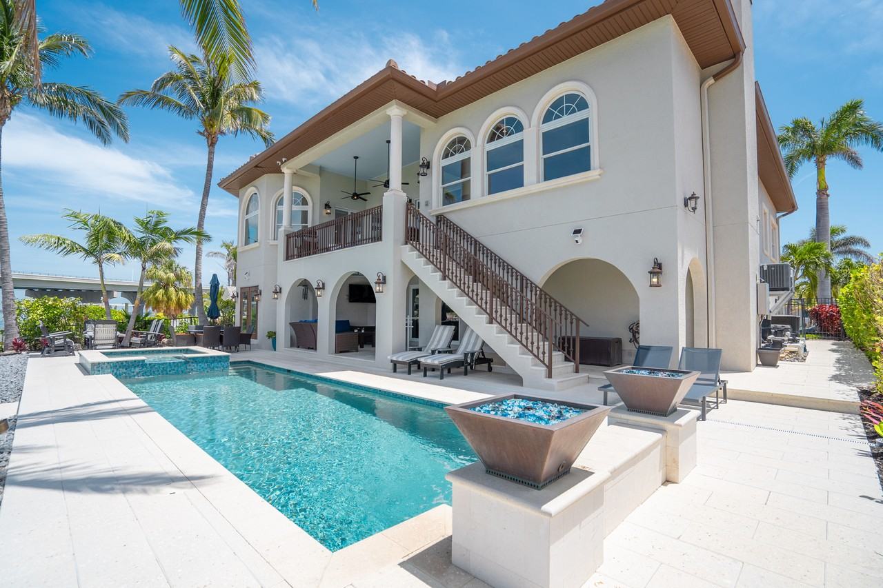 Experience waterfront luxury living in the heart of Vina Del Mar, St. Pete Beach! Fully furnished and impeccably styled, this 5-bedroom, 5-bathroom home offers stunning sunset views and a direct sightline to the iconic Don Cesar. Inside, an expansive open layout is framed by soaring ceilings and high-end finishes, with a showstopping custom jellyfish chandelier welcoming you in the foyer. The chef's kitchen features a Sub-Zero refrigerator, stainless steel appliances, a gas range, and seamlessly flows into the dining area and living room. There's counter bar seating for casual meals, a large dining table area for gatherings, and a cozy yet high-end living space perfect for relaxing or entertaining. The primary bedroom features beautiful large windows with direct Gulf views and luxury crown lighting on the ceiling. The en-suite bathroom includes dual vanities, a deep jetted tub, a walk-in closet, and a spacious layout that elevates your everyday routine. Step outside to your own private oasis, complete with a heated pool, hot tub, and an expansive patio overlooking the water. The dock offers a peaceful spot to soak in the views or launch a paddleboard for a sunset float. Downstairs, a bonus area includes a bar, air hockey, ping pong, lounge seating, a TV, and a home gym perfect for entertaining or unwinding after a day in the sun. The oversized garage fits two vehicles with plenty of extra storage, and there's ample driveway parking as well. Situated just a short walk from Vina Del Mar Park and a bike ride from Pass-a-Grille and St. Pete Beach, you'll also be close to coastal favorites like Fort De Soto Park, Shell Key Preserve, and Egmont Key. Available May 1 through September 30, this home rents for $15,000 a month for May, August and September, and 20k a month for a June and July plus taxes and fees. All utilities are included. Weekly pool and lawn service and monthly pest control are provided by the owner. Please note: the boat lift is not available during the rental period but you can use the boat dock to launch paddleboards and kayaks.