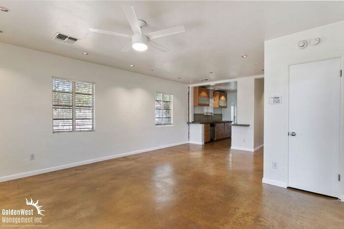 Charming 2Bdm 2Ba Home with Modern ADU in Uptown Phoenix! This beautifully updated home features concrete flooring throughout, adding a sleek, industrial touch to the space. The spacious living room offers plenty of natural light, creating a welcoming and comfortable atmosphere. The modern kitchen boasts stainless steel appliances such as a refrigerator, dishwasher and a stove/oven/range, complemented by a stylish modern and wood design, ideal for preparing meals and entertaining. Both bedrooms are generously sized, with ample closet space and modern finishes. The bathroom features contemporary fixtures and a clean, minimalist design, offering a relaxing retreat. The attached ADU studio provides additional living space, with its own modern kitchen featuring gray and wood accents and hard tile flooring throughout. This studio also includes a full bath. Additional amenities include a one car garage in the back, perfect for added privacy and convenience, a spacious backyard that offers plenty of room for outdoor activities and entertaining and a stack set washer and dryer. Located just off the 51 Freeway in the vibrant Uptown Phoenix area, this property is close to local shops, restaurants, and more, providing an ideal combination of comfort and convenience. Tenant pays all utilities. Pets with approval via Petscreening. com process. This property allows self guided viewing without an appointment. Contact for details.