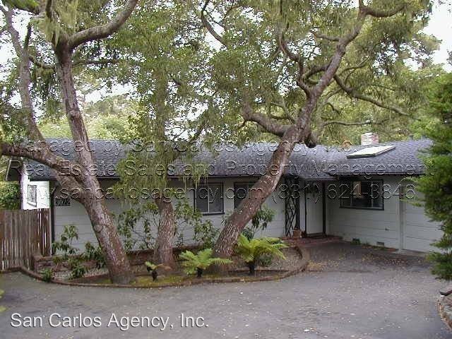 3 Bed/2 Bath in Country Club Area of Pebble Beach - (HOLL2) San Carlos Agency, Inc. features this spacious three bed, two bath single-level home in the Country Club area of Pebble Beach. Enter into hallway with closet, kitchen with refrigerator, electric range and oven, disposal, dishwasher, and microwave. Living room now has hardwood floors, skylights, a fireplace, and sliding glass doors onto the rear patio. All three bedrooms are off the hall and have hardwood floors. Both bathrooms are also off hall (one with shower, one with tub/shower). Master bed also has sliding glass door that leads to rear patio. There is a large two car garage with separate golf-cart entrance and washer/dryer hook ups with storage cabinets. The rear yard is fenced with patios and low-maintenance landscaping under oak trees. Large driveway with extra parking area. No smoking. Pets negotiable.