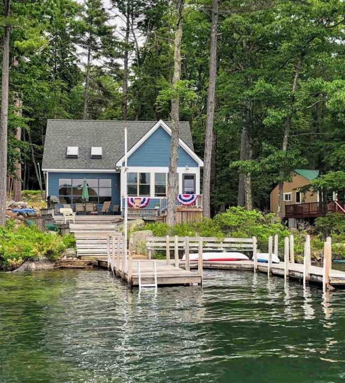 WEEKLY VACATION RENTAL - $2,000 PER WEEK - Bear Island Escape! This delightful completely REBUILT cape - still maintaining its lake cabin feeling - is located on the largest non-bridged island on Lake Winnipesaukee. Truly an outstanding location to experience and explore the lake! West facing multi-level deck captures sun all day, or relax under the shady trees. Deck leads to a 22 u-shaped dock that can accommodate up to 3 boats. Swim ladder. Entertain in the evenings on the deck while watching amazing sunsets, or gather around the fire pit. Outdoor fun also means hiking the interior trails on Bear Island, canoeing, taking an outdoor shower under the stars or firing up the grill and dining alfresco. Watch the Mt. Washington boat cruise by on certain days and evenings. NEW kitchen includes island and plenty of space for entertaining. Open concept 1st floor kitchen/living with expansive views of the lake. Master bedroom and bath, and washer/dryer. Newly added second floor with 2 bedrooms that can be used as one large bedroom, plus loft area and ? bath. Completion of house by spring, 2019. Photos will be added as things are completed. Sleeps 8. Directly across from Cattle Landing public docks and parking (approx .33 mile). You must have a boat of 21ft of smaller to access this property, located within minutes to Cattle Landing public docks & parking. State of New Hampshire Rooms & Meals Tax Operator\'s License #024832 Provided by Listanza ID 25740686