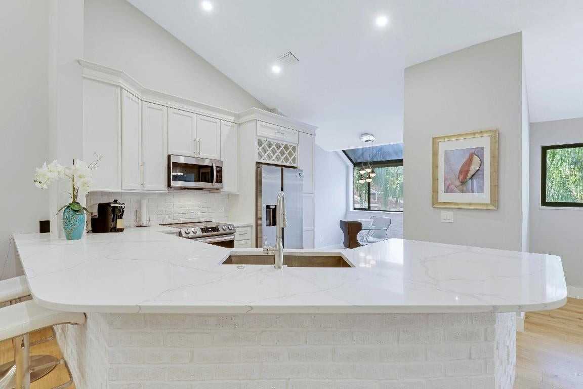 Enjoy paradise in this beautiful contemporary 2bedroom/2bathroom condo with one car garage at highly desirable community in Juno Beach. This spectacular vacation home has been completely remodeled with beautiful upgrades and all the modern luxury comforts. Hardwood floors and ceramic tile throughout. Large living area with vaulted ceiling leads to the kitchen and breakfast nook. In addition a separate dining area. The gourmet kitchen features stainless steel appliances and quartz counter tops. Motorized custom blinds in Master and Guest Bedrooms. Hurricane Windows installed recently. This unit is available for season as well at $6150 per month. Seasonal rent includes water, internet , cable, and also electricity up to $100.