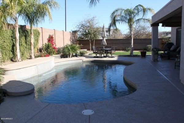 Shows BETTER than the Model! Oversized Corner Lot is in the all SINGLE LEVEL HOMES section of Shamrock Estates, and even has a peek at the Santan Mountains. This home is complete with heated AND cooled swimming Pool in the backyard oasis! Inside there is no wasted space with the Great Room concept with a high end built-in entertainment center by Stonecreek. Gourmet Kitchen with slab granite countertops and 42'' Spiced Stain Maple Cabinets with pull out shelves. 20'' Tile flooring in all the main areas of this home and plush carpeting in the bedrooms. Completely Move-In READY! Close to the 202, Santan Shopping Mall, Fry's Marketplace and Seville Golf and Country Club. Highly desired Chandler Traditional Academy within walking distance. Low HOA fees, too!