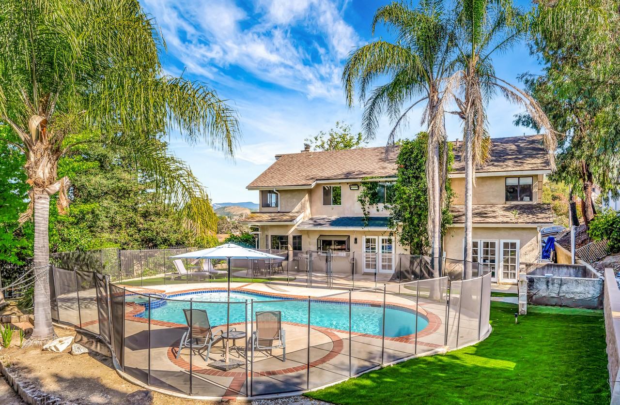 Welcome to this beautiful 4-bedroom, 3-bathroom home located in the highly desirable Agoura Hills neighborhood. The inviting living room features a cozy fireplace and TV, creating the perfect space to relax or entertain guests. The elegant dining area includes a large table with comfortable seating, ideal for family meals and gatherings. The fully equipped kitchen provides everything you need to prepare and enjoy home-cooked meals. For entertainment, enjoy a friendly game of pool by the second fireplace, complete with a high table and seating for casual socializing. The home offers a convenient downstairs bedroom and full bathroom, ideal for guests who prefer to avoid stairs. The laundry room is also located on the main level for added convenience. Upstairs, the spacious primary suite features a comfortable king-size bed and a peaceful reading nook. The additional bedrooms include queen beds and dedicated study areas, making them perfect for both rest and productivity. There is also a separate office room, ideal for remote work, as well as an additional flexible space that can be used as a creative studio, music room, art space, or dance area (not a bedroom). Step outside into your private backyard retreat, complete with a fenced pool and spa, artificial grass, and plenty of seating for relaxing or hosting barbecues. The double lot provides ample space for outdoor activities such as soccer, games, or simply enjoying the California sunshine. Don’t miss the opportunity to stay in this exceptional home—book now for a memorable and comfortable experience.