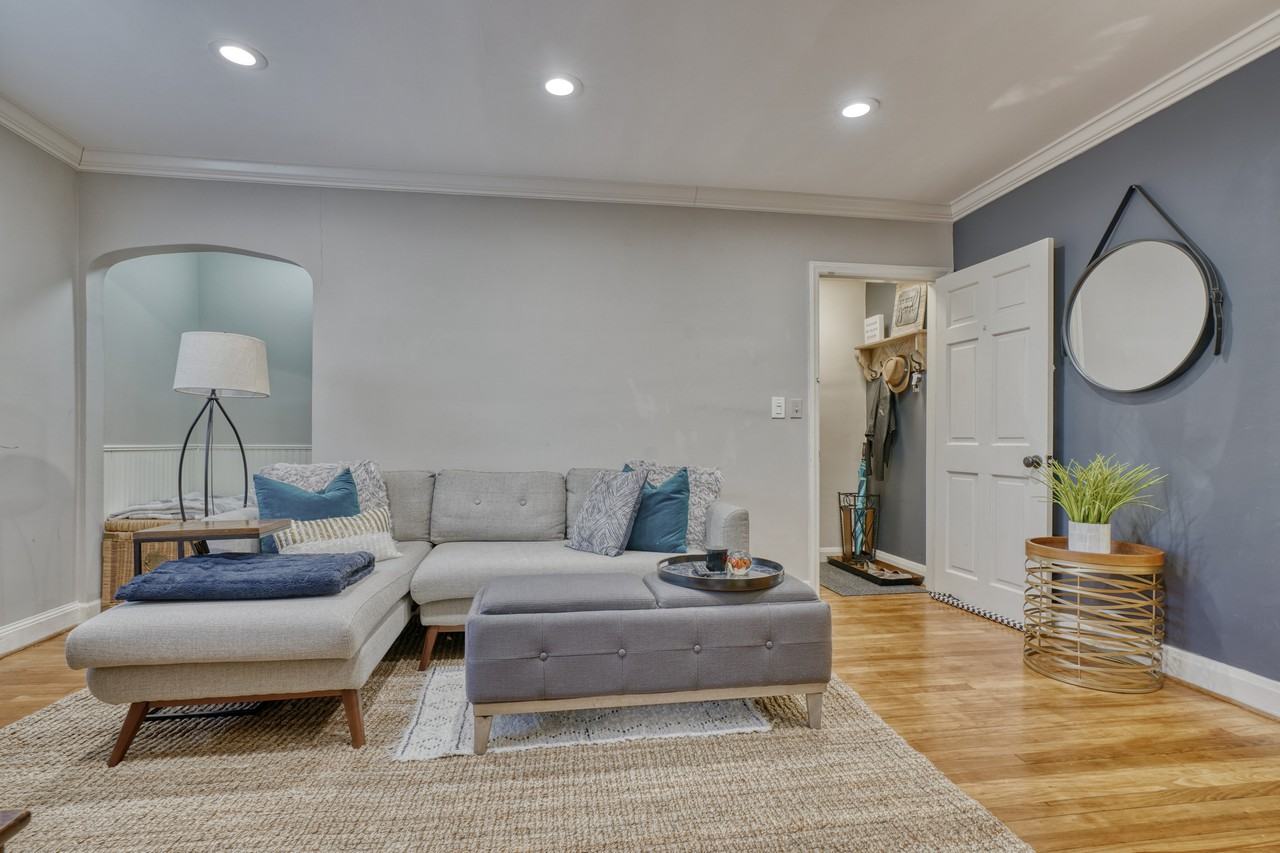 Welcome home! This apartment is on the top floor of a two unit house with central air conditioning. It has a private entrance and 2 bedrooms and 1 bath on the first level and an additional loft space/office on the top level of the house, with skylights. The apartment includes:updated and modern kitchenupdated bathroom with a shower over tubrecessed lights with dimmer switchescrown moldingwindow blindsa closet organizer system in one of the two bedroomsmodern light fixtures in bedrooms, loft and hallwayshared laundry on the lower level of the housevery convenient to Belvedere Square and public transportationIt is being rented UNFURNISHED. Monthly rent is $1595. Tenant pays utilities. Security deposit is $1595.