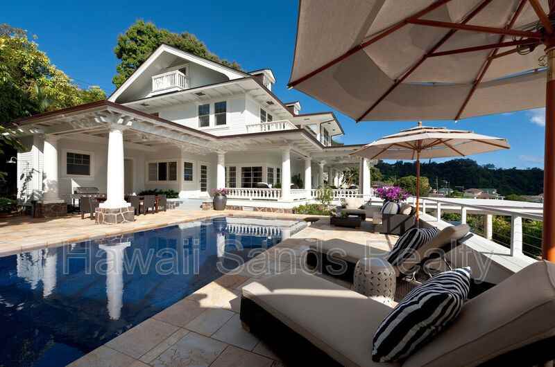 The historic Hobron-Lai Estate is one of the most impressive residences on Oahu. This estate is situated near the top of Pacific Heights and offers commanding views of iconic Diamond Head, Waikiki, Downtown Honolulu, Punchbowl, and the Ewa plains out towards Waianae. Centrally located with easy access to H-1 and Pali Highway yet far enough away to enjoy total peace and quiet. This classic Hawaiian Colonial, originally built in 1916, was thoroughly remodeled with attention to detail in 2010 and was the featured home in Hawaii Home & Remodeling magazine. Residents will enjoy the stately porte-corchere with the convenience of a large circular driveway. Situated on over a half acre of land, this property makes the ideal executive residence where you can entertain and host guests in style. The kitchen features top of the line appliances, granite countertops, and a butler’s pantry that has been tastefully remodeled into an ample wine bar. The first floor boasts meticulously restored hardwood floors, a large formal living room, dining area, powder room, family room, and home office. The second floor, accessed via a grand staircase (or the butler’s stairs), has a large master suite with shower and garden tub, as well as three ample bedrooms; one with private bath and the other two sharing a connected bathroom. Three of the four bedrooms have breathtaking views of the the city. The third floor is an improved attic space with pool table. All the bedrooms enjoy the convenience of central air-conditioning, however its rarely necessary with the pleasant breezes. In addition to the main house there is a separate pool house of over 600 square feet that has its own kitchenette and access to a full bathroom located just off the kitchen. The pool house can be used as a fifth bedroom or a guest house and also enjoys impressive views of the city. This estate is offered fully furnished and ready to move in. The estate is not available for short-term rental. Tenants will be responsible to pay for all utilities. Yard and pool maintenance are included. Given the historical significance of the home and its finishings, pets are strictly prohibited. Learn more at www hawaiisands com 3050pacificheights