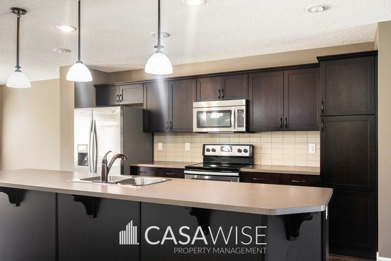 3 Bed+ Den Townhouse in Keswick! FINISHED BSMT / DBL Garage & Fenced Backyard! Move-in now to this spacious and comfortable 3Bed+Den/3.5bath townhome with fully finished basement! The gallery-style kitchen features a large island, tile backsplash, stainless steel appliances, and great lighting. Bright dining area right off the lovely foyer that welcomes you when arriving from the back. The living room is very spacious and it's windows overlook the beautiful front yard. Vinyl plank flooring for the main areas. A half bath completes the main floor. Upstairs you'll find the master bedroom that comes with a walk-in closet, and an ensuite bathroom. Two more good size bedrooms and the main bathroom with a linen closet complete this level. The finished basement comes with a den, perfect to be used as a bedroom when adding a dresser, a big family room, and a lovely full bathroom. Fully fenced backyard with deck and a detached double garage. Utilities, lawn maintenance, and snow removal are tenant responsibility. Located in Keswick, beautiful newer area in the South West of the city, this unit has quick access to , Ellerslie Road, Terwillegar Drive and the Anthony Henday. Close to the Windermere golf course, schools, parks and the Windermere Shopping Centre. No Smoking No Pets PROFESSIONALLY MANAGED by Casawise Property Management Only applications received through our site will be processed: https wkf ms 3ytpexk If interested, please provide us with your name, phone number, available times for viewings and a little background about you (when do you need the unit for, how many people would be living in the unit, etc.). Thank you! Move-in now to this spacious and comfortable 3Bed+Den/3.5bath townhome with fully finished basement! The gallery-style kitchen features a large island, tile backsplash, stainless steel appliances, and great lighting. Bright dining area right off the lovely foyer that welcomes you when arriving from the back. The living room is very spacious and it's windows overlook the beautiful front loan. Vinyl plank flooring for the main areas. A half bath completes the main floor. Upstairs you'll find the master bedroom that comes with a walk-in closet, and an ensuite bathroom. Convenient upstairs laundry with front load washer and dryer. Two more good size bedrooms and the main bathroom with a linen closet complete this level. The finished basement comes with a den, perfect to be used as a bedroom when adding a dresser, a big family room, and a lovely full bathroom. Fully fenced backyard with deck and a detached double garage. Utilities, lawn maintenance, and snow removal are tenant responsibility. Located in Keswick, beautiful newer area in the South West of the city, this unit has quick access to , Ellerslie Road, Terwillegar Drive and the Anthony Henday. Close to the Windermere golf course, schools, parks and the Windermere Shopping Centre.
