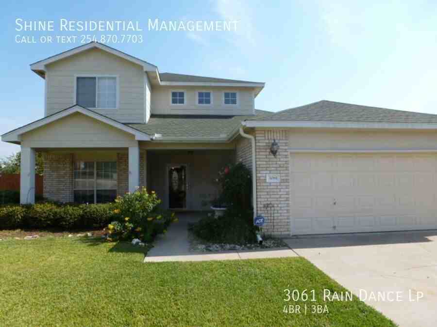 Welcome to 3061 Rain Dance Lp, a stunning 4-bedroom, 2.5-bathroom home located in the vibrant community of Harker Heights, TX. This home is a perfect blend of style and comfort, featuring a spacious layout with hardwood floors and climate control for year-round comfort. The kitchen is a chef's dream, equipped with a dishwasher, microwave, refrigerator, and stove/oven, along with a pantry for extra storage. The living area is accentuated by a cozy fireplace and large windows with coverings, allowing for plenty of natural light. The bedrooms are generously sized, each with walk-in closets and ceiling fans. The master suite boasts a double sink vanity and a linen closet. Additional amenities include a washer/dryer, laundry hookup, and ample storage space. The exterior of the home is just as impressive, with a fenced yard, patio, balcony, and deck, perfect for outdoor entertaining. Garage parking is available, and pets are considered on a case-by-case basis. Experience the convenience and comfort of 3061 Rain Dance Lp, where every detail has been thoughtfully designed for modern living. Air Conditioner Climate Control Disposal Double Sink Vanity Heat Electric Laundry Hookup Linen Closet Mirrors Pet Friendly/ Case By Case Storage Space Walk In Closets Washer/Dryer Window Coverings