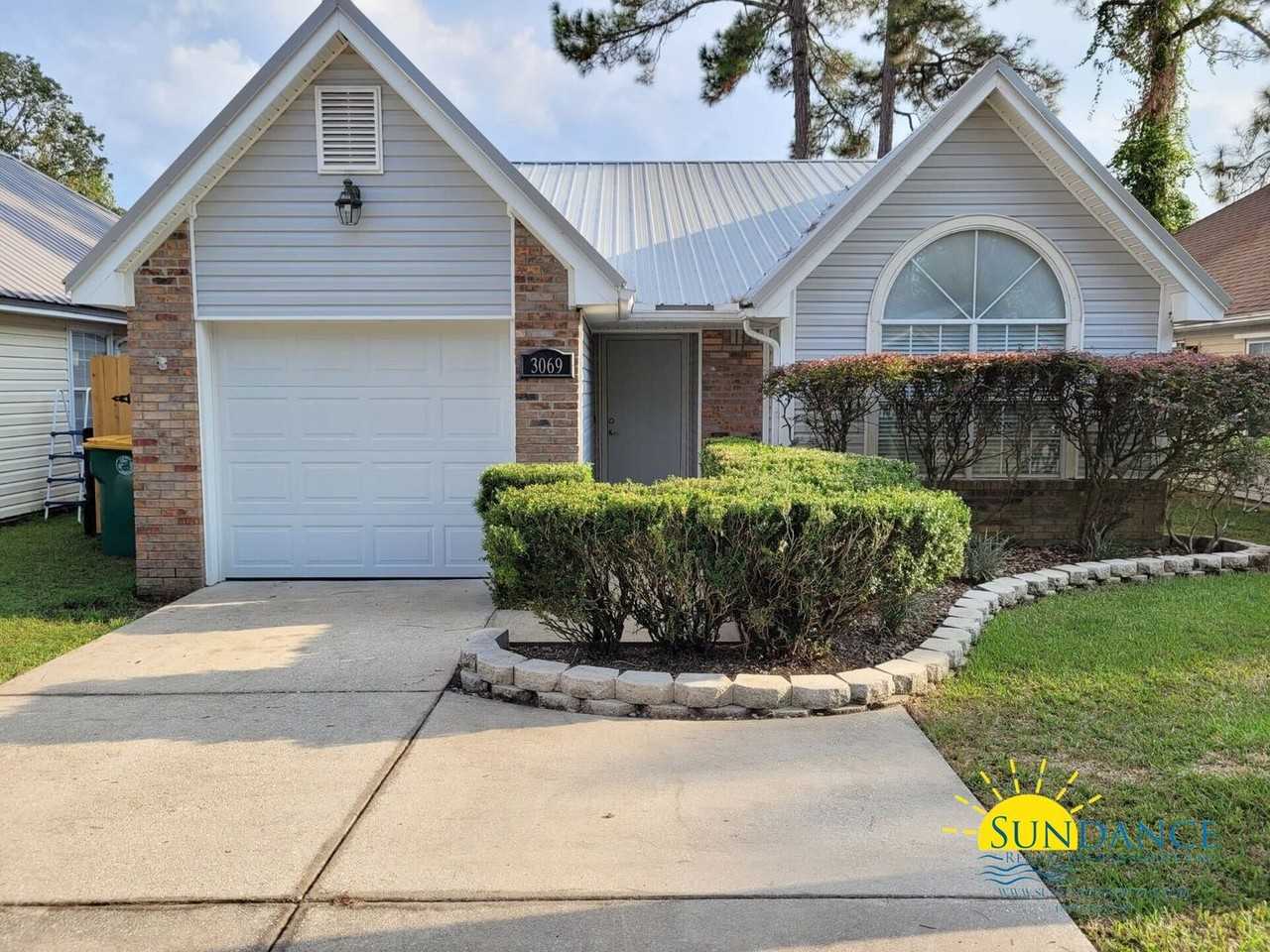 This inviting home in the desirable Yorktown neighborhood of Fort Walton Beach offers a perfect blend of comfort and convenience. Featuring an attached one-car garage with additional dual driveway parking, this property provides plenty of space for both residents and guests. Inside, you'll find a bright and airy living room with soaring vaulted ceilings, complemented by stylish designer ceiling fans throughout the home. The brand-new luxury vinyl plank (LVP) flooring adds a modern touch to the entire space. The large eat-in kitchen is a chef's dream with ample cabinet and counter space, a pantry for extra storage, and plenty of room to entertain. The spacious primary suite includes a vanity area and an updated, handicap-accessible shower for ultimate convenience. Two additional generously-sized bedrooms offer plenty of space for family or guests. The second bathroom features a modern, updated vanity and a well-designed layout. You'll also appreciate the laundry closet with washer and dryer hookups, making laundry day a breeze. Step outside to enjoy the newly installed privacy fence surrounding the backyard, ideal for relaxing or entertaining on the open patio. Additional Features: Energy-efficient light-colored insulated metal roof to help reduce utility costs. Security system (AS-IS). Pets (under 30 lbs) may be considered with owner approval and a non-refundable pet fee. No smoking allowed. Don’t miss out on the opportunity to make this lovely property your new home!