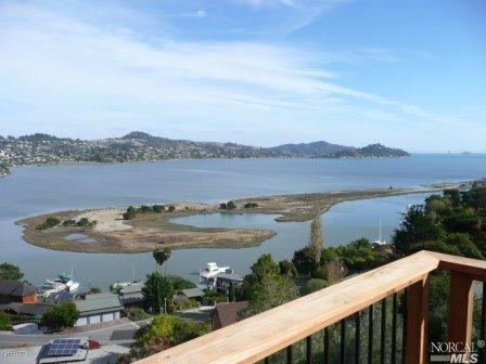 Wonderful bay and city views from this remodeled contemporary home with light filled rooms and four decks with views. Refinished wood floors throughout, sleek updated kitchen new appliances, cabinets and counter tops, . On the main level 1 bd/ 1ba, kitchen, living room with fireplace, dining area and 2 decks. Downstairs 2 bd / 1 ba, 2 decks, office / 4th bd rm and laundry rm. 2 car covered parking. Easy access to the Cove, Tiburon and Hwy 101.
