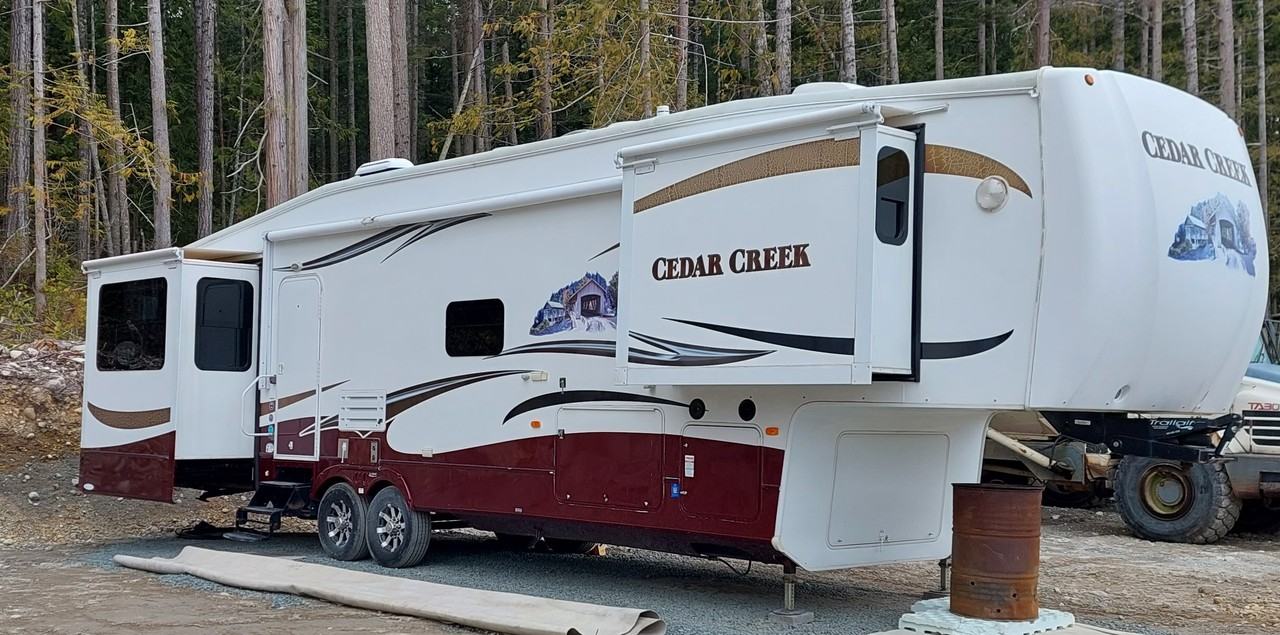 40ft 5th wheel for rent. It has 5 slides. 2 TVs. 4 door fridge freezer. Fireplace elc. Brand new washer dryer. Fully furnished, Internet included. Central Air conditioning. Large storage on unit. Max 2 people. Quiet spot no neighbors. Hydro is metered approx. $75 avg per month Propane on stove $45 a bottle will last a long time. 2 persons $1300 1 per $1200. Note* unit pic is not actual site. Also a Part time storage facility manager/ handy person job available, ideal for a retired person. A criminal background and credit check are required. We are in no rush to rent and are accepting applications.