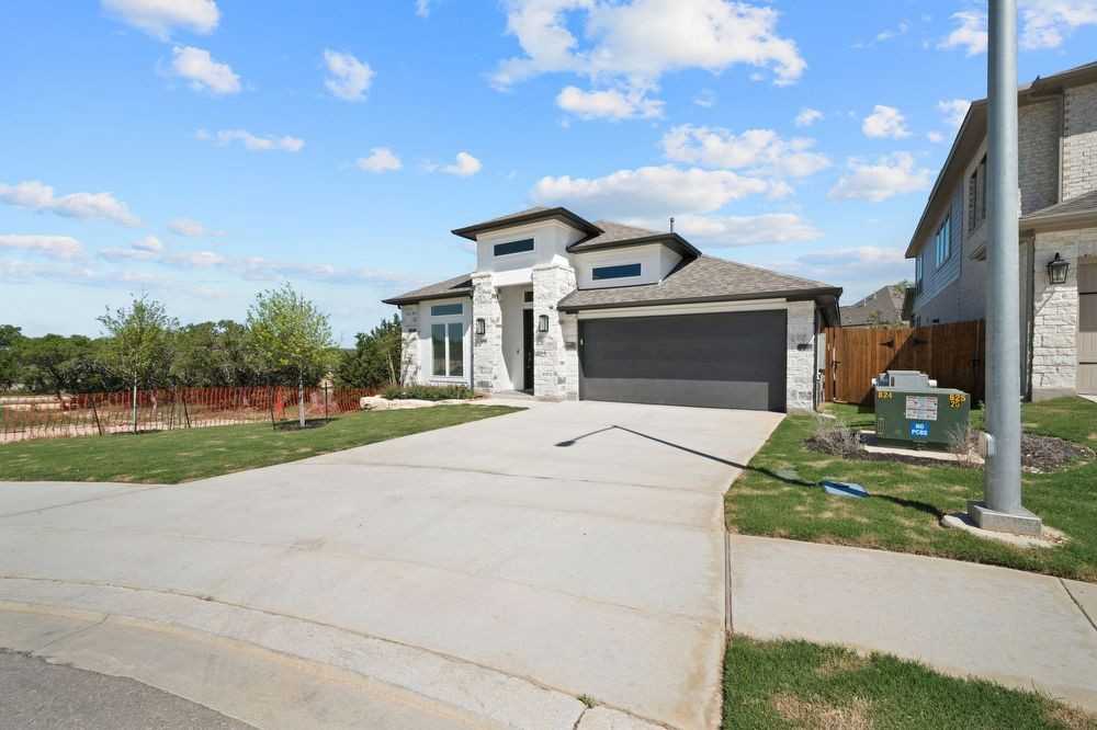 Beautiful, brand new Perry Home boasts a home office adorned with French doors situated at the entry, accompanied by a lofty 12-foot ceiling. An extended entry leads to a seamlessly flowing open kitchen, dining area, and family room. The kitchen is equipped with a corner walk-in pantry, ample counter space, and an island featuring built-in seating. The dining area seamlessly transitions into the family room, complete with a cast stone fireplace and a wall of windows. The primary suite offers a luxurious retreat with a double-door entry to the primary bath, featuring dual vanities, a garden tub, a separate glass-enclosed shower, and two expansive walk-in closets. Additionally, a guest suite with a private bath further enhances the spaciousness of this one-story abode. Outside, an extended covered backyard patio beckons relaxation. Completing the picture is a convenient mudroom situated off the two-car garage.