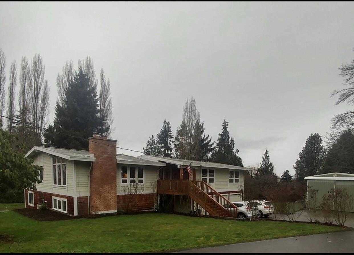 MUKILTEO SCHOOL DISTRICT, BOEING, and NAVAL STATION EVERETT! This bright, spacious 5-bedroom home located in the award-winning Mukilteo school district is the best of all worlds! The large corner lot is nestled on a private street in an upscale family-friendly neighborhood, yet is within no-freeway biking distance of Boeing and Naval Station Everett. Walk to picturesque Old Town Mukilteo, playgrounds and parks, the ferry landing, and the new direct-to-Seattle Sounder train station. Almost too many features to list! The giant wraparound deck offers partial sound views and is the ideal setting for barbecues, outdoor parties, quiet morning coffees, and sunset cocktail hours. Oversized recreation room with floor-to-ceiling windows. Stunning exotic hardwood floors. Sun-drenched living room with a fireplace and soaring ceilings. Formal dining room with crown mouldings and kitchen with a solid rosewood floor. Media room. Walk-in pantry. The downstairs level boasts a master bedroom with a wood burning fireplace and an adjoining nursery , a master bath, and a sunny extra bedroom with a gorgeous tigerwood floor. Bonus room that can be used as a study or additional guest room. Mud room with washer and dryer. Fully fenced back yard with mature fruit trees. Perennial flowering bushes and beds. The three-car garage measures more than 1500 square feet, is outfitted with extensive shelving, and has enough additional room for bikes, ATVs, work benches, and sports equipment. Driveway space for six cars, an RV, and a boat. Amazing sunset views! Pets considered on a case-by-case basis.