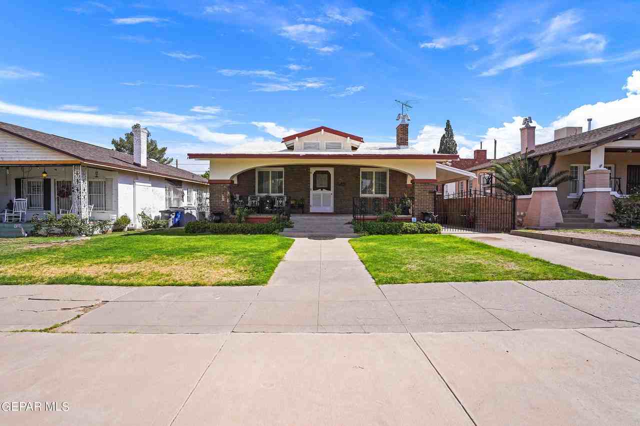 One-story brick residence in historic Manhattan Heights! This charming home is situated on a quiet street minutes from Memorial Park/Tennis Courts/ Swimming Pool/Library and Crockett Elementary. Main home features 1,305 Sq Ft living space, cool refrigerated air, gracious porch, hardwood floors, 2 comfortable bedrooms, 1 bathroom with stained glass accent, great room with fireplace, dining room, breakfast area, kitchen with tons of cabinet space and a 318 Sq Ft basement with laundry hookup and half bath. Detached 666 Sq Ft in-law quarters with one bedroom, living area, bath and extra storage room. Easy access to I-10 and Loop 375. Approximately 10 minutes to Fort Bliss, Downtown, Texas Tech and UTEP.