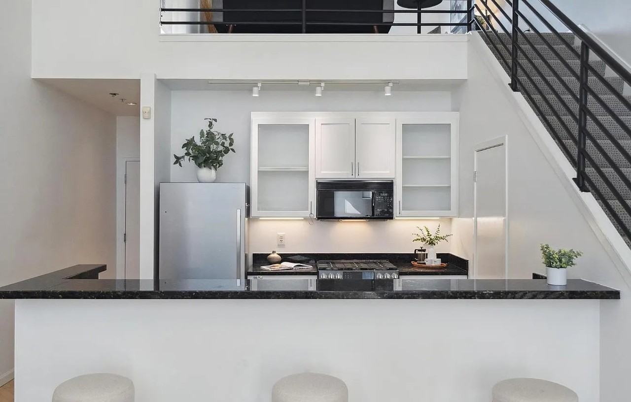 Top-floor loft condominium in a boutique Mission District building offers soaring ceilings, walls of glass, and abundant natural light. The south-facing residence features an expansive great room with living, dining, and kitchen areas that open to a walk-out balcony perfect for entertaining or relaxing in the sun. The modern kitchen includes a bar island and a massive walk-in pantry, while a stylish powder room and in-unit laundry add convenience. The private bedroom retreat offers great outlooks and views along with an en-suite bath. Completing the home are deeded garage parking with interior access and a rare oversized storage room. Located in the heart of the vibrant Mission District, you're surrounded by some of San Francisco's most celebrated restaurants, cafs, bakeries, and markets, with public transit, bike lanes, and freeway access nearby. A light-filled loft with volume, views, and an unbeatable location.
