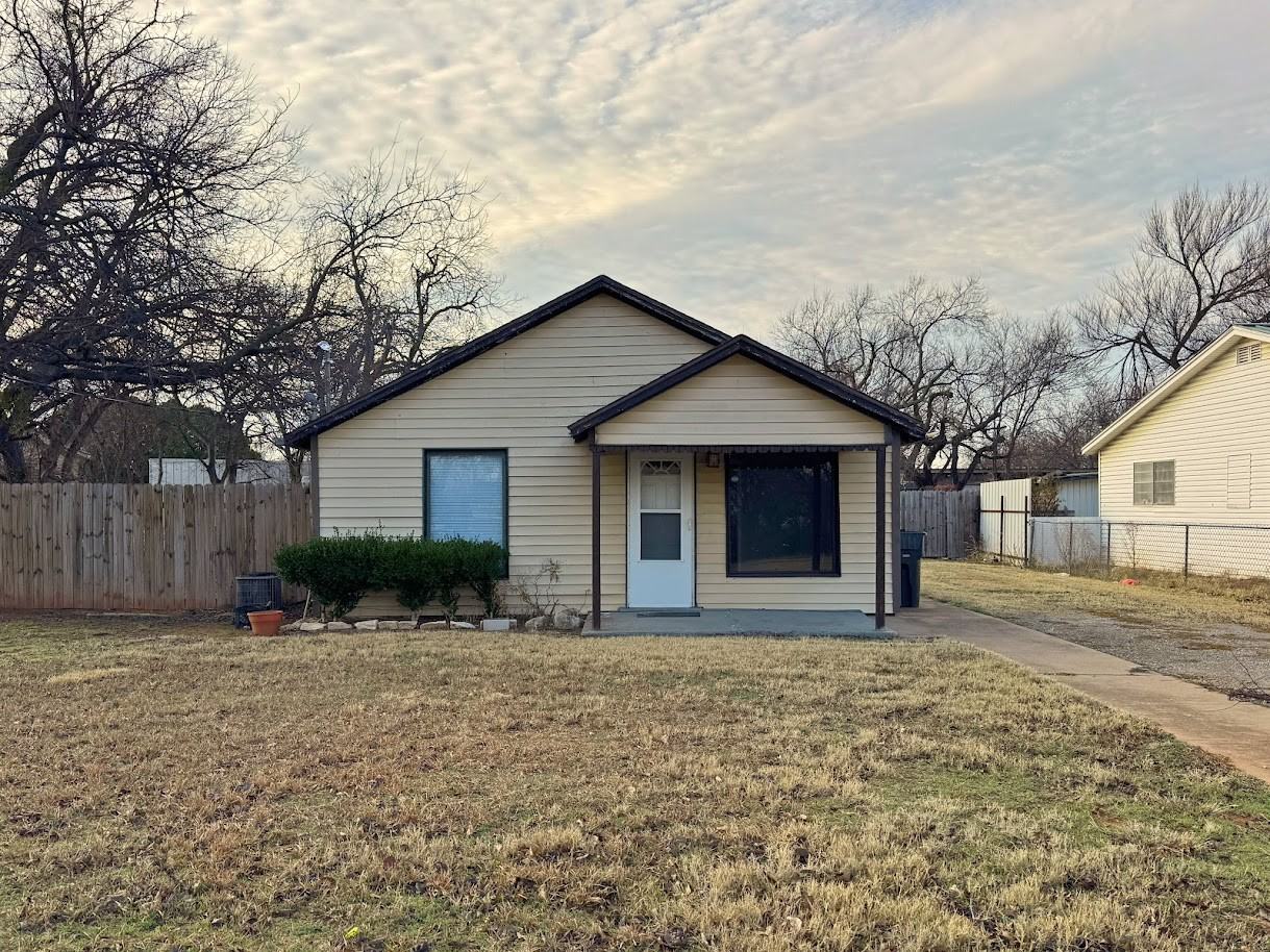 2 Bed 1 Bath with a huge, fence yard + storage buildings in Wichita Gardens! Throughout you will find vinyl flooring and newer paint. Front room would be great office. Kitchen has plenty of cabinetry, butcher block countertops, a microwave, range, and refrigerator. Rearden has washer/dryer connections. Outside you will find a patio, a workshop/garage, and a 2nd storage building. Pets allowed on a case-by-case basis with a $250 fee per pet. Deposit is the same price as rent. Apply today at www worthampm com