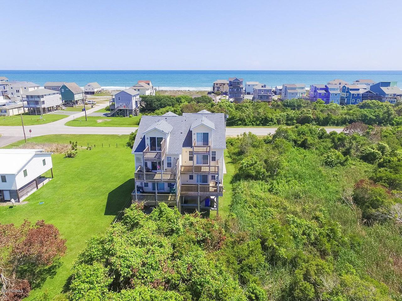 Amazing three bedroom, three and a half bath duplex at North Topsail Beach. Decks on every level provide breathtaking views of the ocean and sound, which surround the home. Beach access is a short walk across the street. Conveniently access the back gate or Sneads Ferry Gate to Camp Lejeune via a lovely 10-12 mile drive. Also close to Surf City shops, restaurants and other attractions. Enjoy the best of the coast! With about 2,000 SF of space, this home has two master suites, each with their own private bathroom. The large open kitchen has all electric appliances, including built in glass top range, side by side refrigerator, and dishwasher — perfect for hosting guests. Closet beneath home provides storage for fishing gear, etc. Lawn care included. 6 month lease negotiable with renewal option. Rent: $2,400 Deposit: $2,400 Application includes credit check. Pets: Sorry, no pets allowed Available for immediate move in. Respond to ad or call Maria at 910-389-4293 for details on this lovely home. Note: Photos are a mix of both sides of the duplex, which are nearly identical.
