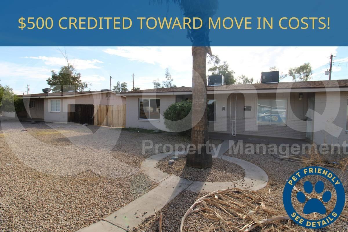 $200 Credited Toward Move In Costs. 750 Sq Ft. 2 bedroom, 1 bath unit in Mesa. Desirable single story floor plan. Charming kitchen with white cabinetry and included appliances. Open concept living/dining. Neutral interior with tile flooring all throughout. Blinds+ceiling fans. This home has 2 nicely sized bedrooms each with ample closet space. Full bath has a shower/tub combo and a vanity sink. Enjoy a fenced yard with desert landscaping. Fantastic location close to public transportation, shopping, dining and freeway access. Application: $65 Application Fee Per Applicant 18 years or older (Nonrefundable). Please allow 24 to 72 business hours to process the Application once all required documents are submitted by all applicants 18 years or older. Lease Length: 12-month Minimum (Longer Lease Term may be negotiable) Initial MOVE-IN Costs: Upon application approval, a nonrefundable Holding Retainer will be required to secure the property and will be applied towards the move-in costs. The Holding Retainer amount is determined by the type of Security Deposit option you choose. Applicants can choose between a traditional Security Deposit which may be 1.25 times the monthly rent but not greater than 1.5 times the monthly rent (75% refundable) or a Security Deposit Alternative program (only available on long-term leases of 12 months or more). A $250 one-time lease preparation fee as well as the first month's rent is due prior to move-in. Pet Policy: Dogs Allowed with the following exceptions: 2 small dogs will be considered upon approval. If the Applicant has a Pet, $150 Non-Refundable Pet Fee per pet. Recurring Monthly Costs: There is a 3.3% Administration Fee. All on Q Property Management Residents are enrolled in the Resident Benefits Package for $39 or $49 with pets, which includes liability insurance, credit building to help boost the resident's credit score with timely rent payments, move-in concierge service making utility connection and home service setup a breeze during your move-in, Renter to Buyer program and much more. All information including advertised rent and other charges are deemed reliable but not guaranteed and is subject to change. Small Dogs Allowed, Large Dogs Allowed, Concierge, Fenced Yard, Dishwasher, Refrigerator, Ceiling Fan & Tile.