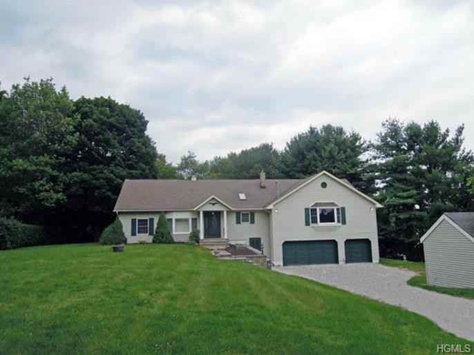 Clarkstown rated #7 as top place to live in USA by Money Magazine. Majestic views & setting are a perfect spot for this sprawling 4 bedroom freshly updated ranch! Gracious driveway w elegant blue stone walkway elicit a warm welcome. Charming entry w spacious foyer leads to the "heart" of the house. Versatile kitchen features granite counters, designer backsplash, five burner gas cooktop, stainless sink with new faucet/soap dispenser & skylight. Formal dining room is highlighted by wainscoting & sliders to a huge deck. The great room is highlighted by a gas fireplace with blue stone hearth & hardwood floors.Sunken living room too! The oversized master bedroom is freshly carpeted! Three other bedrooms have hardwood floors & provide room for all. Updated bathrooms with new counters & tile work. Freshly painted, with additional space on the lower level. A three car garage is a bonus. Enjoy the outdoors on the "grand" deck, the two sheds & splendid property. Conveniently located as well.