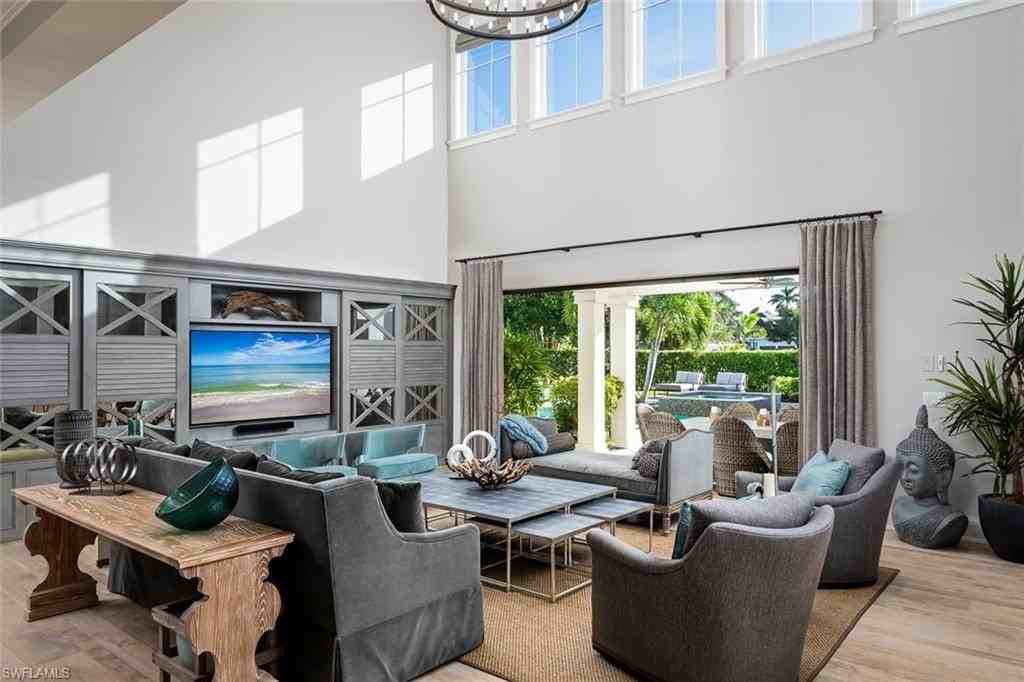 Property Status: Active Perfectly situated on an oversized corner lot in the elegant Moorings neighborhood sits this 5-bedroom, 3 full bathroom, 2 half bath luxurious home. The interior consists of beautiful hard wood flooring, custom cabinetry, top of the line name brand furniture and appliances. Tall ceilings and endless windows allow for this home to be flooded with natural light. The bedrooms consist of 3-kings, 1-queen, and 1-full size beds, giving you plenty of space for you and all your guests. Step into your private sanctuary through the pocketing sliding doors connecting the dining room and living room to the outdoors or exit directly from the master bedroom. The unique and breathtaking outdoors entails a custom pool and spa surrounded by plenty of lounge chairs. There are two outdoor sitting areas. The 1st is an intimate area perfect for morning coffee or evening cocktails. The 2nd is an outdoor living room where you are able to cozy up next to the fireplace while watching your favorite movie on a cool winter night in Naples. Invite friends and family over and enjoy the gourmet outdoor kitchen with a spectacular wolf grill. This Naples home has everything you could ever need. Office Phone: (239) 594-2226 Copyright © 2026 Naples Area Board of REALTORS. All rights reserved. All information provided by the listing agent/broker is deemed reliable but is not guaranteed and should be independently verified.