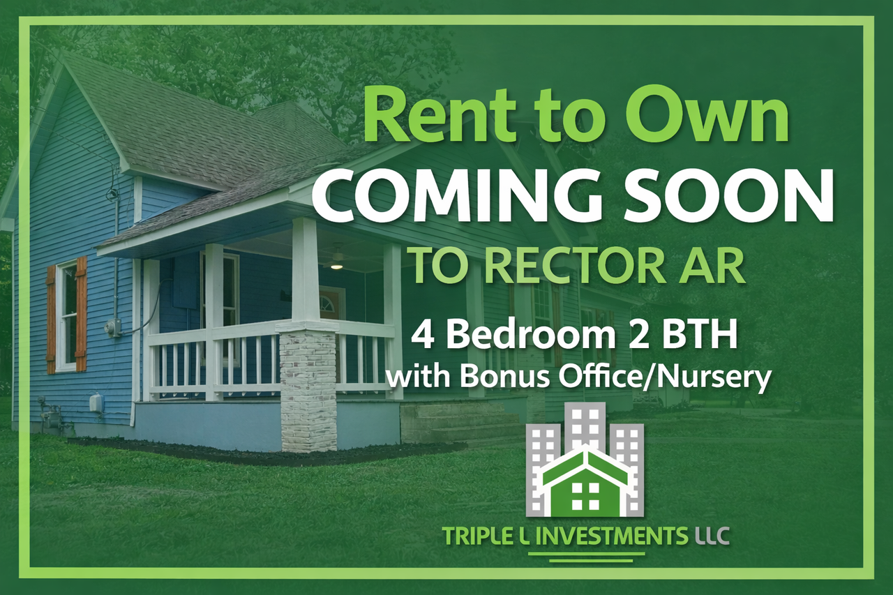 Property Id: 1614892 RENT-TO-OWN • RECTOR, AR AVAILABLE SOON — Mid to Late May Recently remodeled home on a .48-acre corner lot! Home Features: • 4 Bedrooms / 2 Bathrooms • Bonus Office/Nursery • Shed/Barn • Custom Window Treatments • All Appliances Included (2024) Program Details: • $6,000 Down Payment • Triple L Investments will cover $1,000 of the down payment • Monthly payment $1,691 • Payments include taxes & insurance • Simple approval process List Price: $181,000 Available mid to late May. Viewings will begin after Easter. Call or text 870.761.5043 option 2 to be added to the viewing list. THIS PROPERTY IS OCCUPIED. VIEWINGS ARE BY APPOINTMENT ONLY. PLEASE DO NOT TRESPASS. Call/Text Angela — 870-761-5043 to apply or schedule a tour. Equal Housing Opportunity. Terms subject to approval.