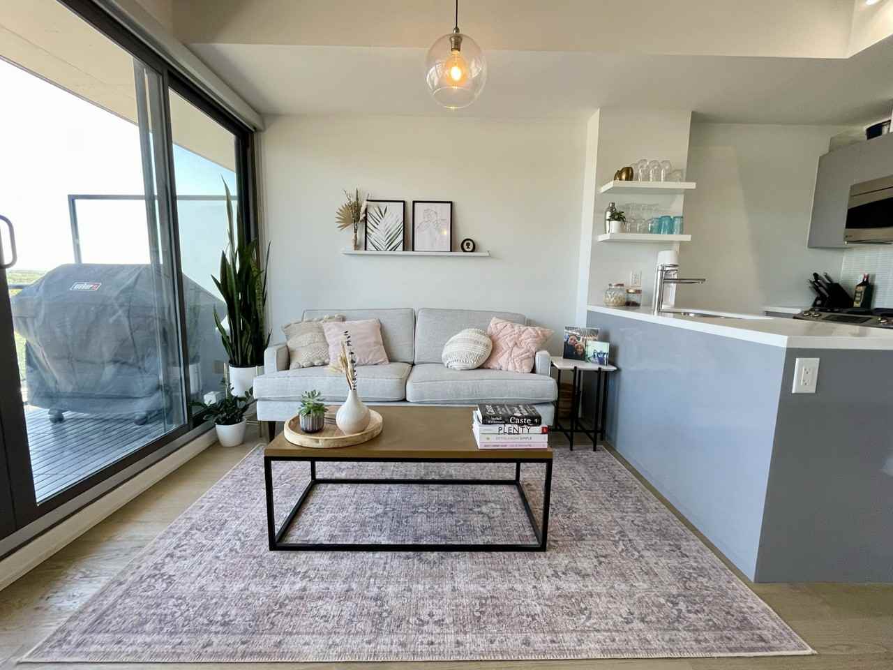 Bright, one bedroom condominium with floor-to-ceiling windows in the heart of Leslieville. Exposed concrete 9-foot ceilings, hardwood floors through and in-suite laundry. Sleek Scavolini kitchen with stainless steel appliances and gas stove. Unit is 566 square feet, in addition to a massive 160 square foot balcony that includes a gas line BBQ hook up. The bathroom has ample storage and a rain head shower. Rental includes storage locker perfect for storing a bike and more. Building amenities include visitor parking, rooftop deck and party room. All appliances included (microwave, stove, fridge and BRAND NEW washer/dryer and BRAND NEW dishwasher). Utilities: Water and heat included. Electricity and internet/TV not included. Available unfurnished. Parking does not come with the unit, but there is parking available in the building for rent, or in the neighbouring outdoor lot.