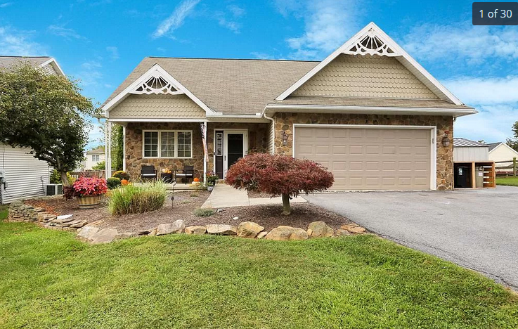 this cute home offers vaulted living room, remodeled 22 handle kitchen with granite countertops, breakfast bar, deep sink, and tile backsplash, dining area, first floor family room with wood pellet stove, laundry and full bath. Upstairs you will find 3 nice size bedrooms. Master bedroom has walk in closet and access to another full bath. There is also a convenient laundry chute located on this level. The downstairs is partially finished- just needs finishing touches for additional living space
