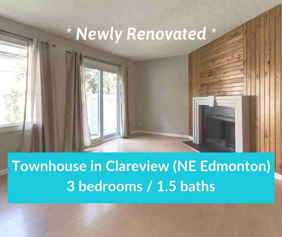 You will feel at home the instant you step inside the door! This nice home is just waiting for someone like you to make yourself comfortable, and put your feet up after a long day at work. This newly updated townhome is available now! - Rent: $1,397 - Security deposit: same as one months rent - Utilities are not included - Pets: A maximum of 2 pets will be considered and must be approved by the Condo Board. Maximum floor to height allowed is 17". A pet fee will apply. Features: This attractive townhome features 3 bright bedrooms and 1-1/2 bathrooms. This townhome in North-East Edmonton is well managed and provides a good safe and secure neighborhood for people who care. This home has linoleum flooring in the kitchen and entrance in addition to new hardwood-looking floor (vinyl plank) in the stairs and in all three bedrooms upstairs! In addition, you'll love the fact that the place has just been re-painted with a trending color that creates a warm and relaxing environment. You'll love cooking your healthy meals in your recently updated kitchen. And best of all, you'll love using the dishwasher for your dirty dishes! And after your long day, you'll absolutely love relaxing in the deep soaker tub! Both bathrooms have also been updated in the past few years. Your basement also includes washer/dryer, a work bench and a semi-finished multi-functional room. Your fenced backyard will be quite handy for your kids and pets to play in a safe environment. You will enjoy having a parking stall, right in front of your home: it will provide you such a relief coming home after doing grocery shopping and be few steps away from your front door. What a pleasure to know that your new home is clean and looks beautiful. Location: Living in your new home, you will be situated close to all necessary amenities. These include: - elementary and secondary schools across the street - shopping (Wal-mart, Superstore, Costco and many other stores along 137 Avenue - convenient transportation with bus stops across the street and LRT station close-by - parks across the street - you are never more than a short distance to everything! For those further destinations, hop into your car parked right out front and you are minutes away from several major thoroughfares, including the Yellowhead Hwy, Victoria Trail and 137th Ave. You will be saving time commuting and on gasoline costs, especially if you are working in the North-East or out-of-town. Act quickly and set up an appointment to view this beautiful home! SOME ADDITIONAL INFO: Rent is $1397. The Security Deposit is the same as the monthly rent. Utilities are not included in the rent. Pet-friendly: A maximum of 2 pets will be considered and must be approved by the Condo Board. Maximum floor to height allowed is 17". A pet fee will apply.