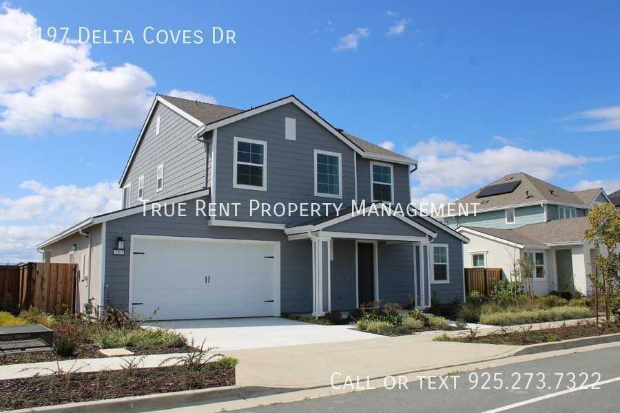 Do not miss out on this nearly new and never been fully lived in home in Bethel Island's premier community, Delta Coves. Home has a private boat dock right in the backyard with a 220 Volt Outlet. Approximately 10 minutes to fast water. Home also has access to the Private resort called Island Camp that you can boat, walk or drive from the residence. Island camp has a pool, spa, outdoor recreation areas with bbq access, bar, gym, indoor recreation with pool tables and games, plus boat docks. This highly upgraded home has 5 bedrooms and 3 full bathrooms. Luxury vinyl plank throughout the common areas downstairs. The downstairs features a 3-Car garage with french doors to the backyard to easily get your water toys to the dock. Large and open family room/kitchen/dining area combo. Gourmet Kitchen features stainless steel appliances, island, walk-in pantry and quartz counter tops. Dining area has slider to the covered patio in the backyard with Delta views and short walk to the private dock. Downstairs also has a shared full bath and two bedrooms. Upstairs has the primary suite with a balcony overlooking the delta. Private bath has dual sinks in the vanity, separate shower and soaking tub. Two additional bedrooms with shared private bath and laundry room with washer and dryer included. Too many upgrades to list all of them, but here are a handful; upgraded cabinets with soft close and undercabinet lights, door on primary bath, outlets and electrical added for holiday lights, boat and baths, cat 5 throughout, hot water stub in backyard, upgraded plumbing and fixtures, 4.90kw Solar system. No Smoking. No pets preferred, but will consider ONE small pet on an individual basis for additional pet deposit. Available by 7/5/2024. Enjoy energy savings with solar power. Tenant responsible for landscape maintenance and all other utilities. Owner pays HOA. CA DRE#0204739