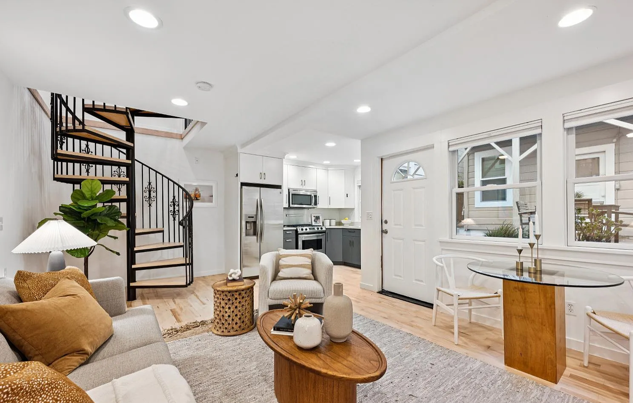 Adorable standalone two-level cottage in the heart of Cow Hollow! This rare hidden gem is located on a quiet cul-de-sac just one block from cafes, restaurants, boutiques, and nightlife on Union Street. The upper level features a light-filled bedroom with a private walk-out deck, a large closet, and a spacious bathroom with a shower-over-tub. The main level offers an open-concept living room with a gas fireplace, dining area, and an updated kitchen with quartz countertops, stainless steel appliances, gas range, and dishwasher. Additional highlights include low monthly HOA dues, maple wood floors, recessed lighting, and custom shelving. A shared backyard provides a perfect space for BBQs and outdoor relaxation. Unbeatable location steps to Union, Fillmore, and Chestnut Streets, as well as Moscone Park, Fort Mason, public transit, and major commuter routes. Don't miss!